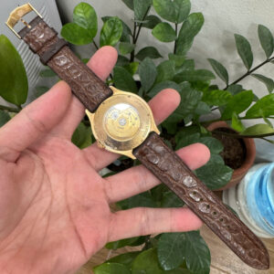 Tông nâu trầm tạo cảm giác ấm áp, sang trọng và cực kỳ dễ kết hợp cùng vỏ vàng hồng 18K. Khi đeo, dây ôm tay tự nhiên, càng dùng càng mềm và bóng hơn nhưng vẫn giữ độ bền nhờ kết cấu sợi chắc chắn của da cá sấu.