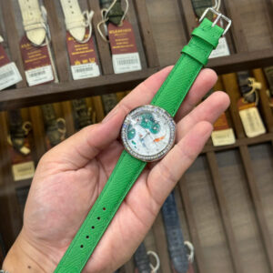 Kết hợp hoàn hảo với mặt đồng hồ cá Koi độc đáo, dây da xanh lá cây mang đến sự hòa quyện giữa thiên nhiên và nghệ thuật, phù hợp với những cô nàng yêu cái đẹp và sự khác biệt.