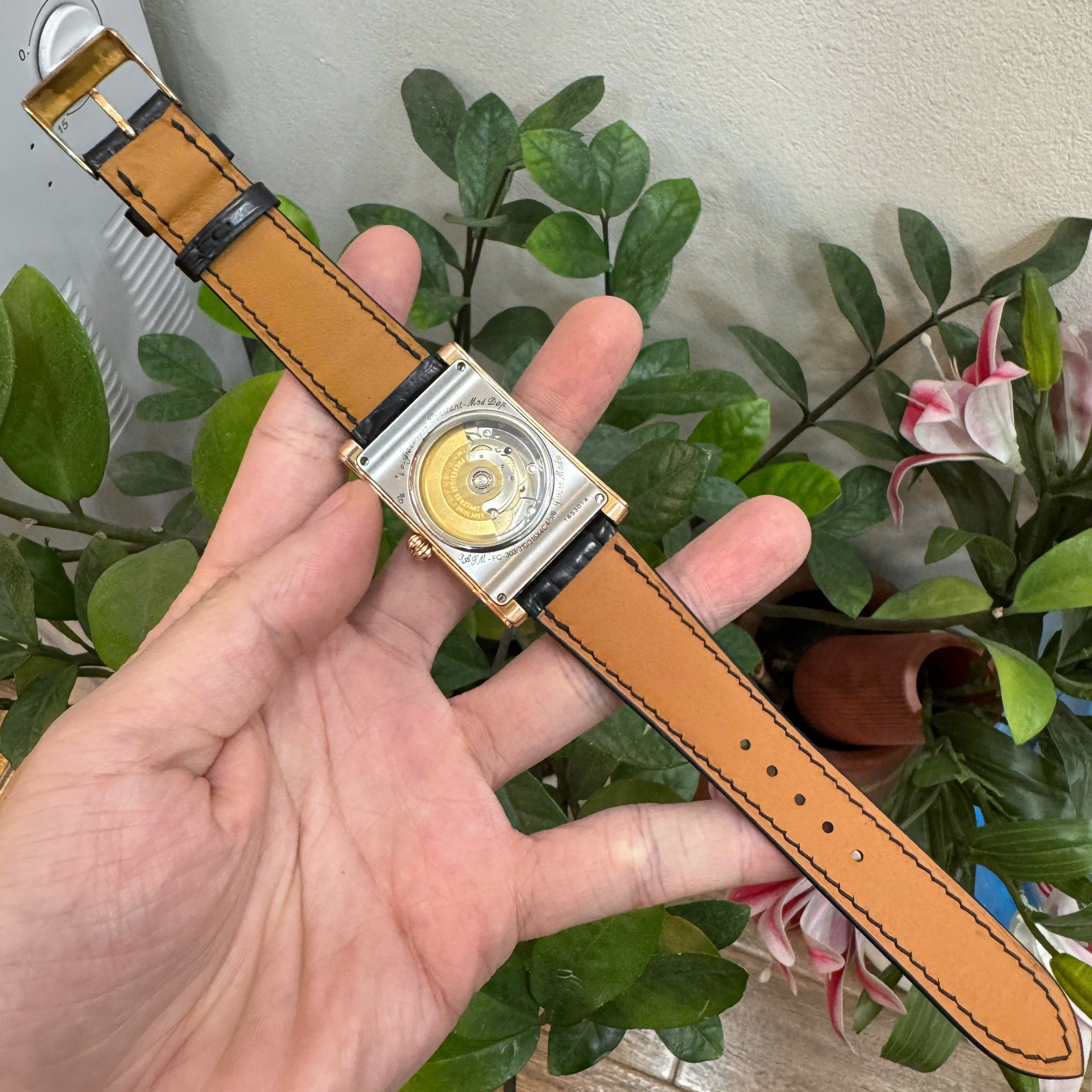 Dây đồng hồ Frederique Constant Classics Carree FC-315CGC4C26 được chế tác từ da cá sấu thật màu đen, mang lại sự sang trọng và tinh tế cho người đeo. Đây là lựa chọn hoàn hảo cho những ai yêu thích phong cách cổ điển nhưng vẫn muốn giữ nét hiện đại, bền bỉ theo thời gian.