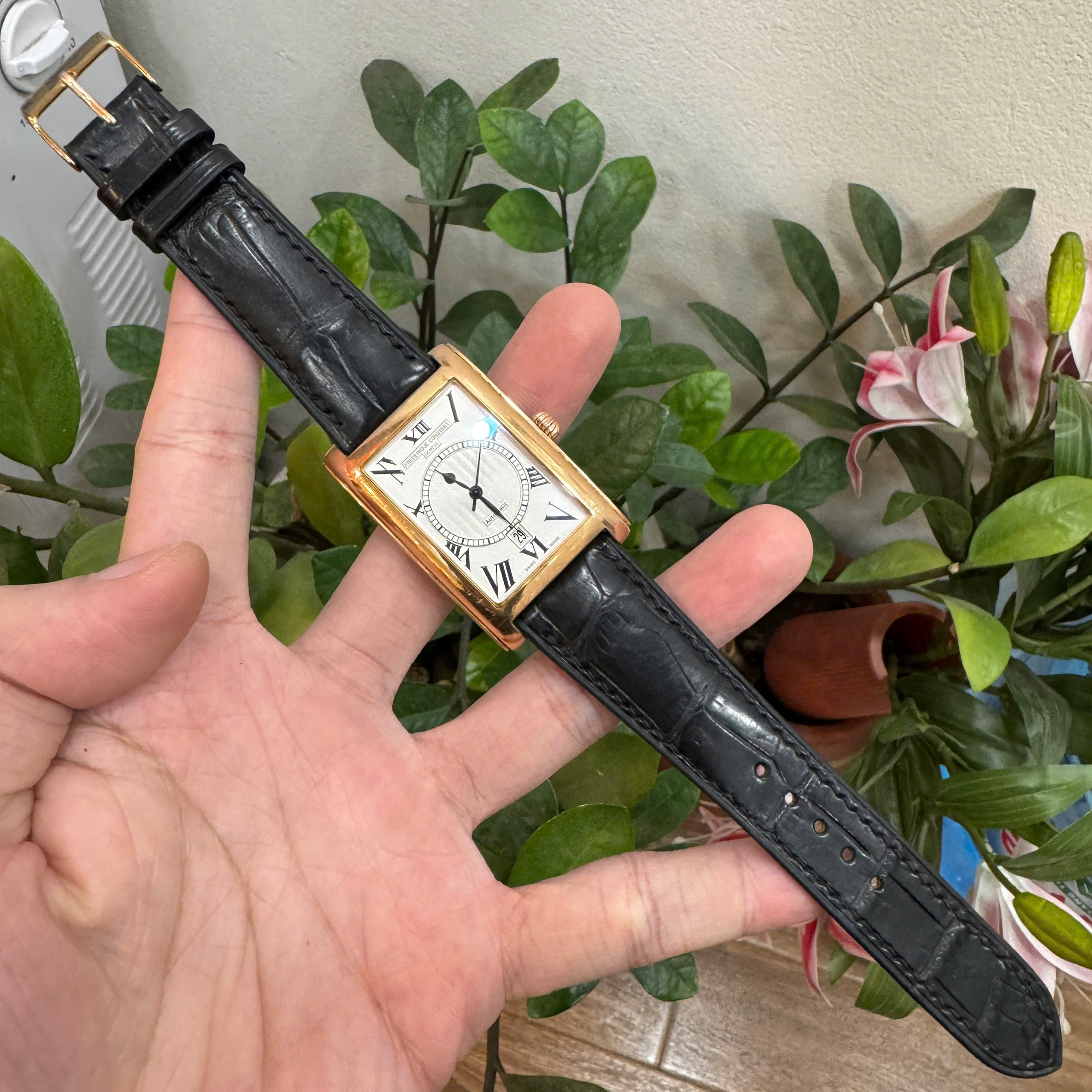 Với dây đồng hồ da cá sấu màu đen Frederique Constant, bạn sẽ không chỉ sở hữu một phụ kiện bền đẹp mà còn khẳng định được gu thẩm mỹ tinh tế và đẳng cấp riêng.