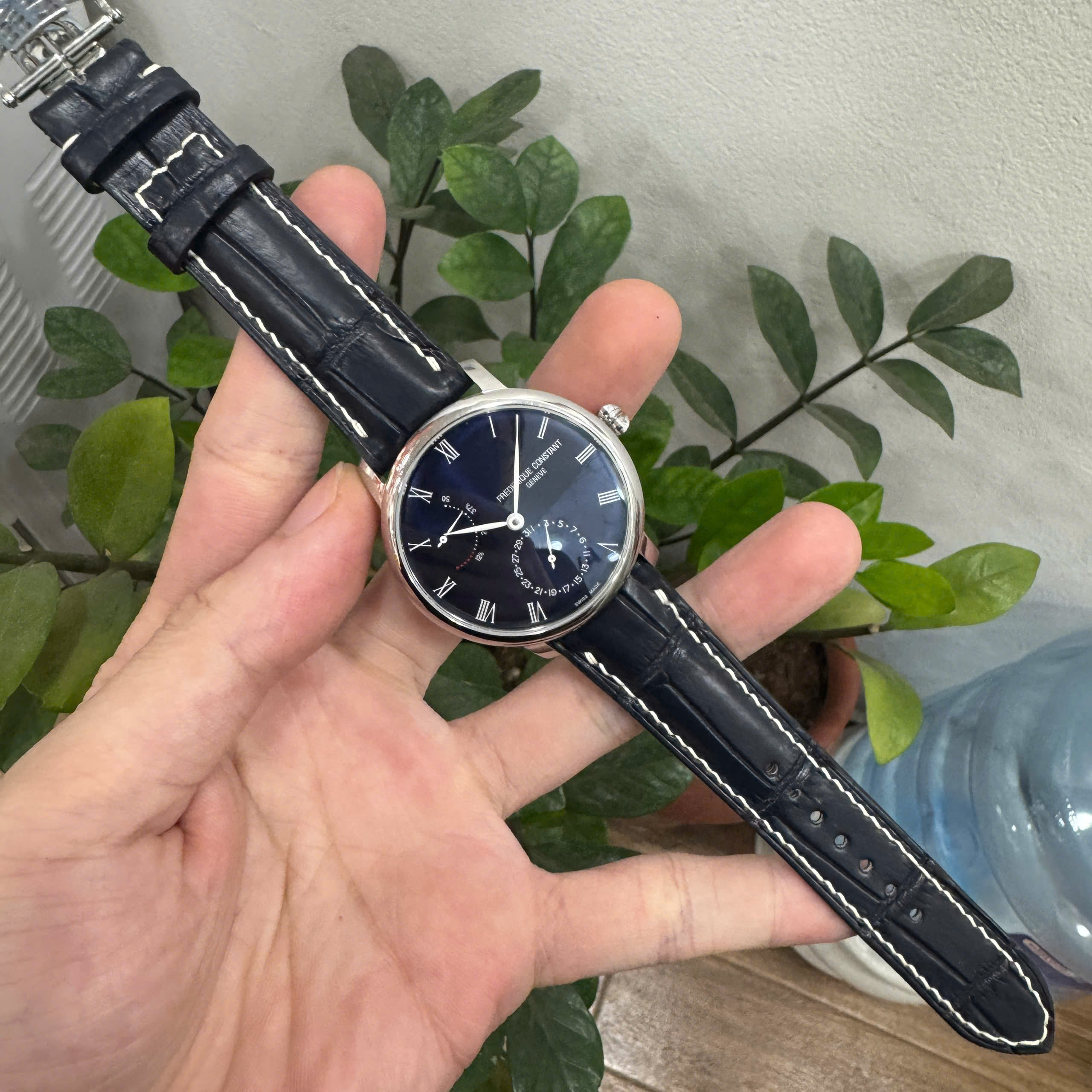 Với dây đồng hồ da cá sấu màu đen Frederique Constant, bạn sẽ không chỉ sở hữu một phụ kiện bền đẹp mà còn khẳng định được gu thẩm mỹ tinh tế và đẳng cấp riêng.