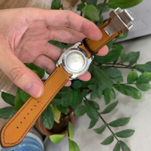 Gam màu nâu trầm mang lại cảm giác ấm áp, cổ điển nhưng không kém phần tinh tế. Đây là màu sắc dễ phối hợp với nhiều kiểu đồng hồ, trang phục và phong cách khác nhau – đặc biệt phù hợp cho phái mạnh yêu thích vẻ đẹp lịch lãm và truyền thống. Các đường may trên dây được thực hiện thủ công tỉ mỉ, sử dụng chỉ sáp chuyên dụng, đảm bảo độ bền và tính thẩm mỹ cao. Mép dây được ép viền kỹ, giúp hạn chế thấm nước và tăng tuổi thọ sản phẩm.