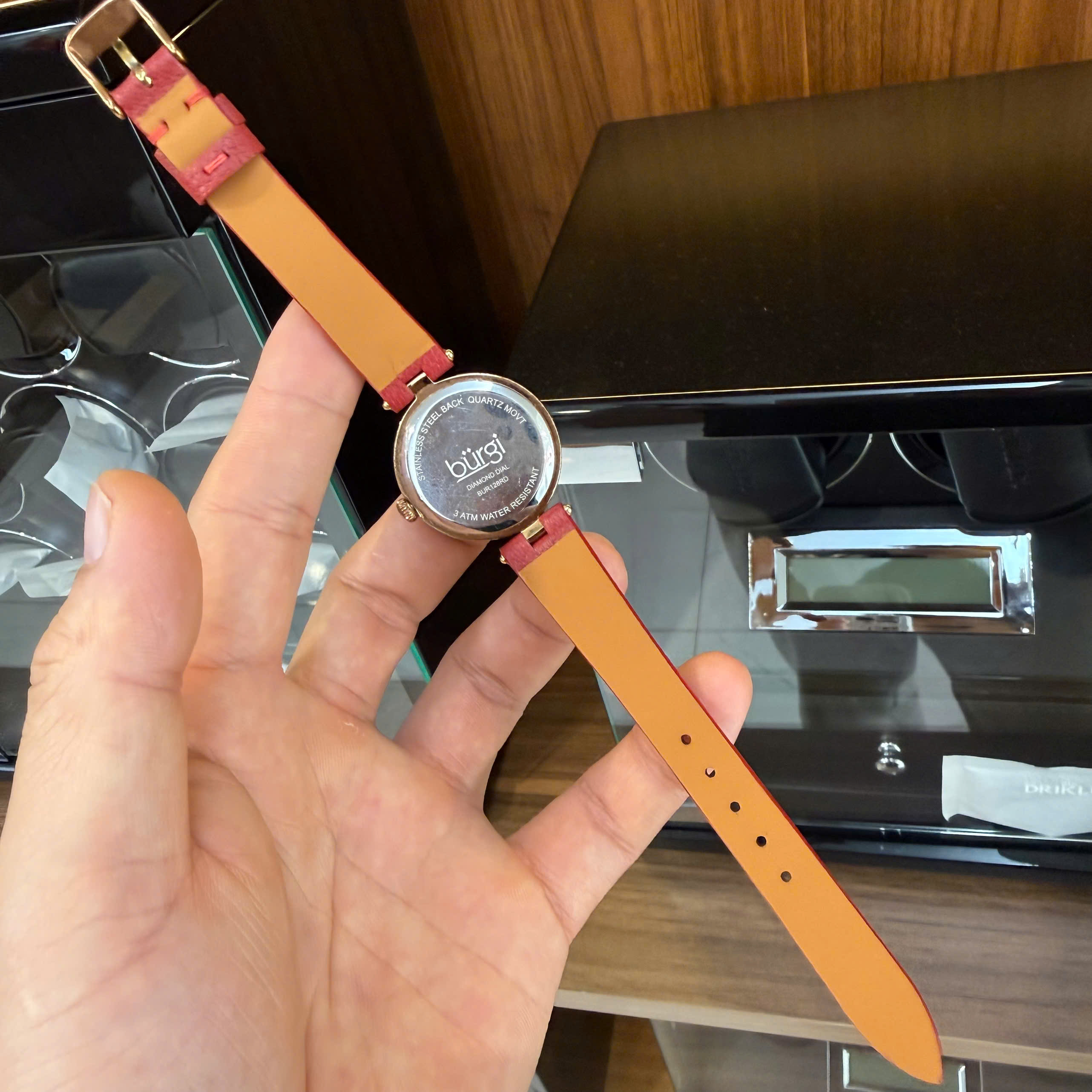 Dây có màu đỏ, nổi bật nhưng vẫn giữ nét thanh lịch, giúp bạn dễ dàng tạo điểm nhấn cho cổ tay dù là đi làm, đi chơi hay dự tiệc. Dây mịn không đường chỉ, khóa kim loại vàng sáng bóng chắc chắn, tạo cảm giác an tâm khi sử dụng lâu dài.