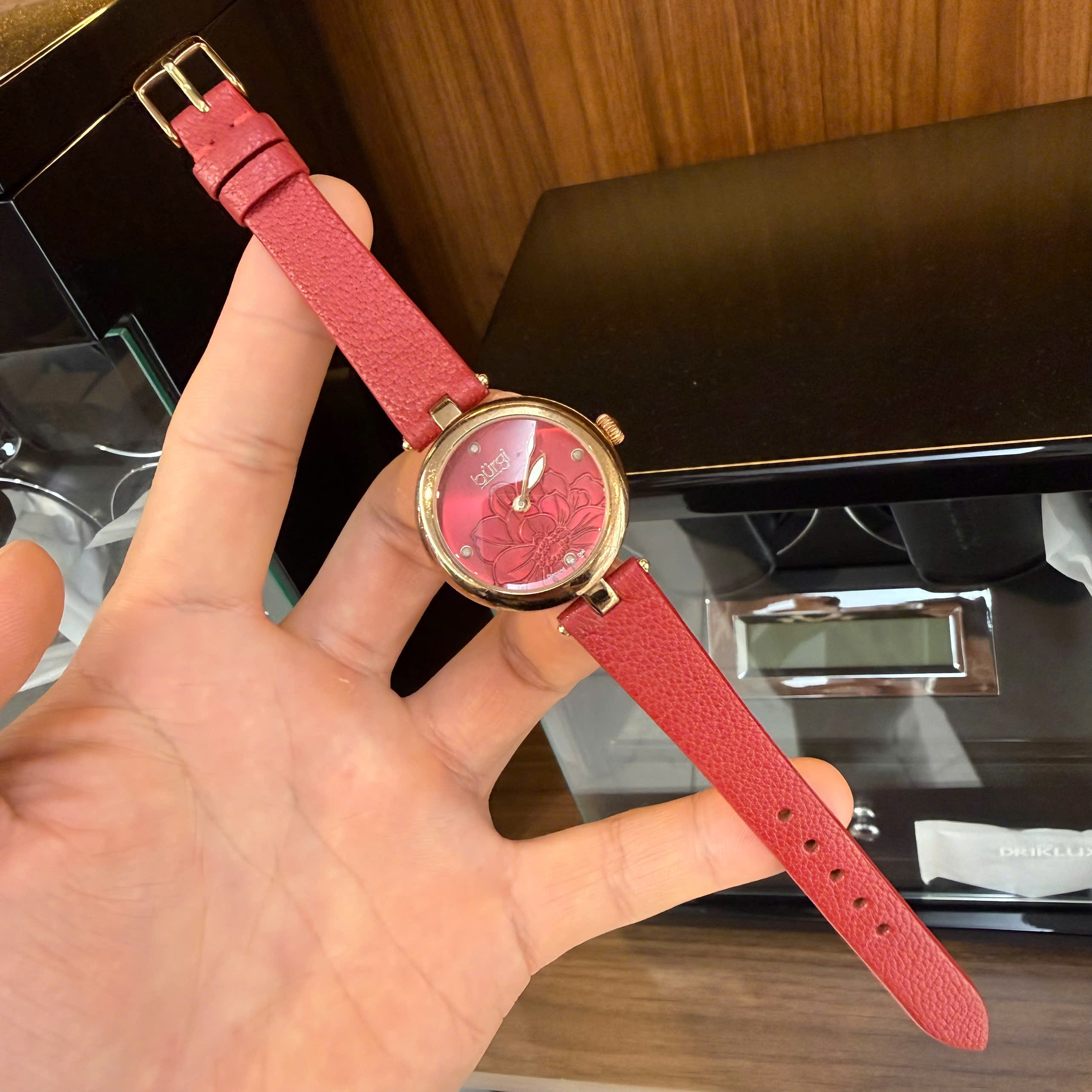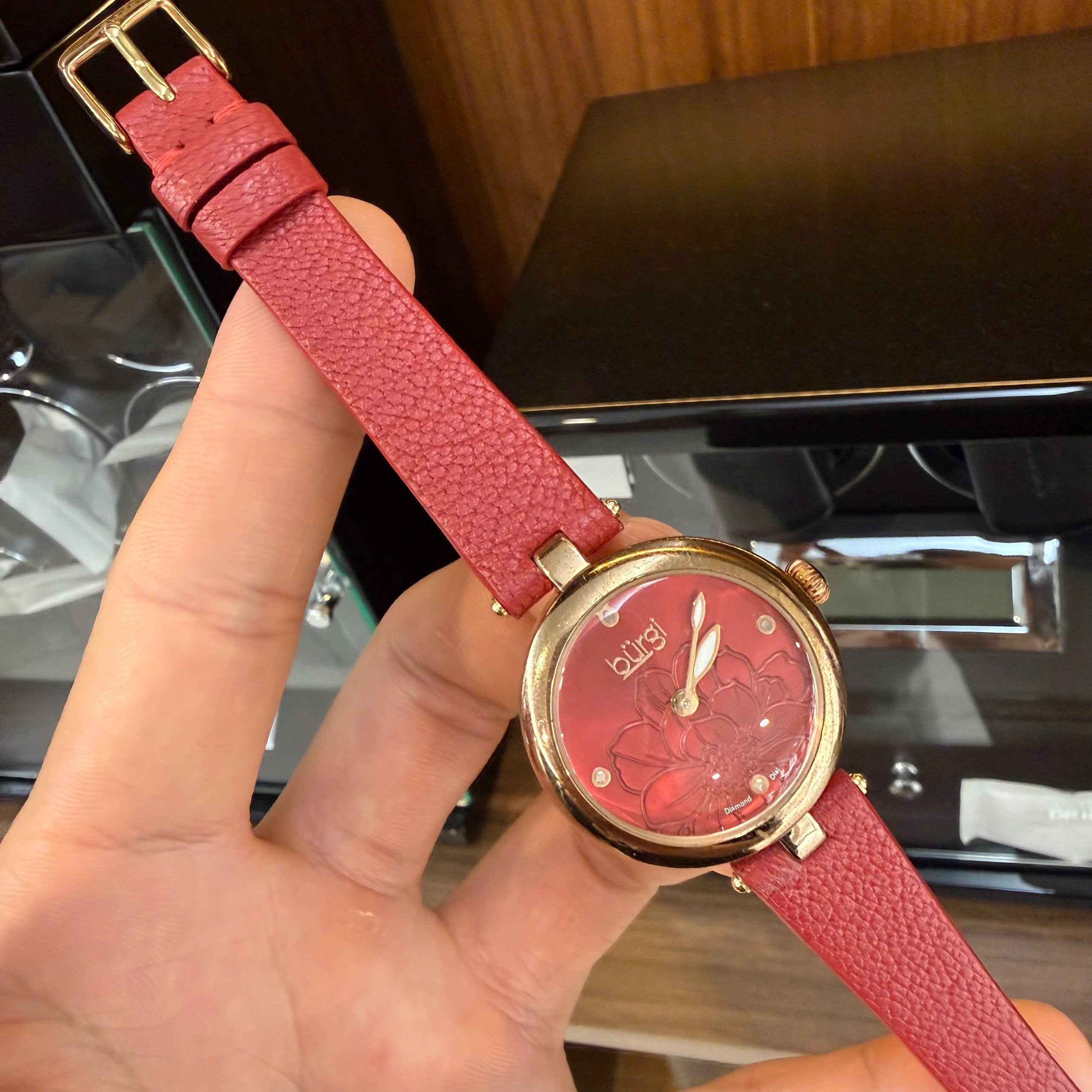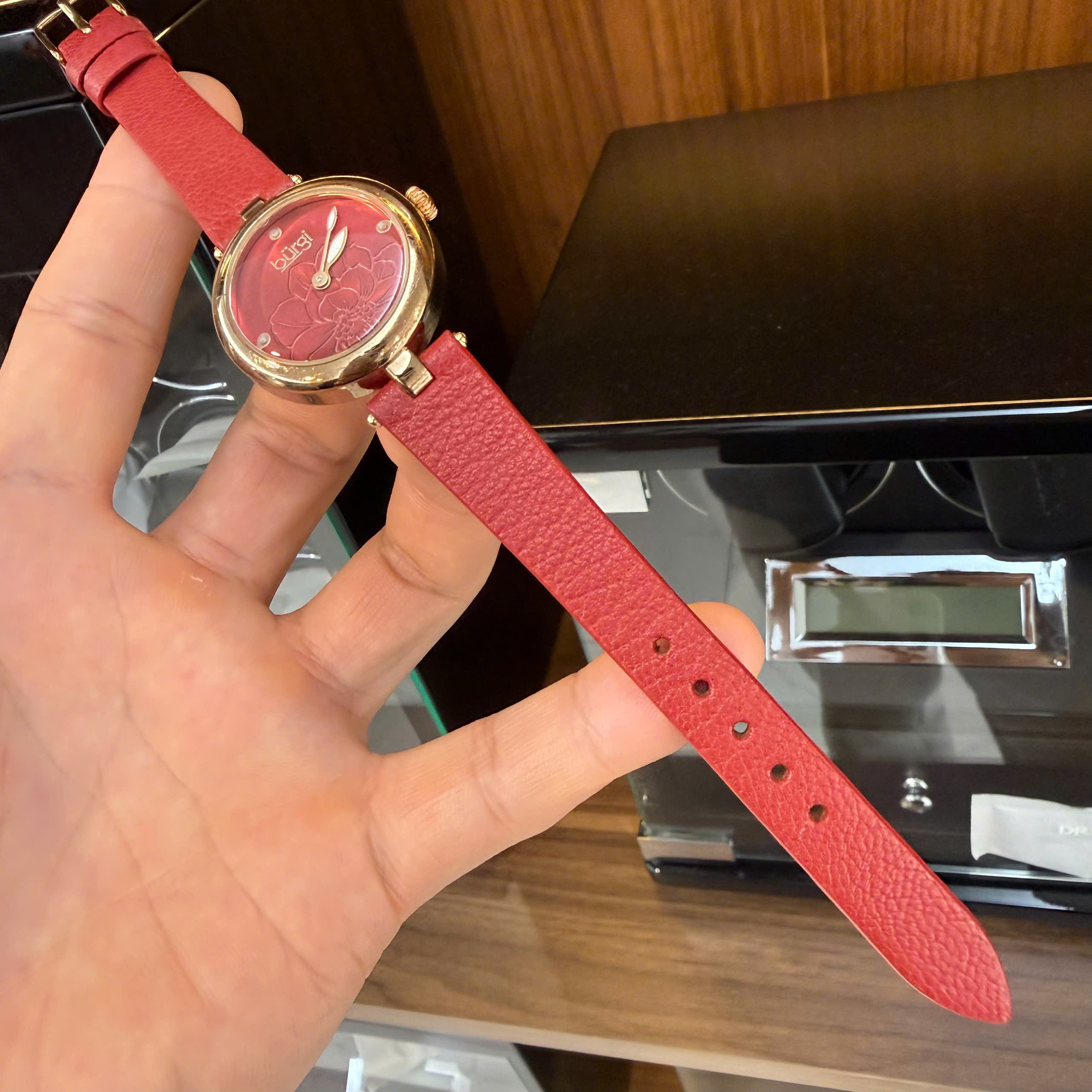Tôn lên vẻ đẹp thanh lịch và cá tính với mẫu dây đồng hồ nữ da bò màu đỏ, thiết kế đặc biệt dành cho dòng đồng hồ cao cấp Burgi Quartz mặt số đỏ. Sản phẩm sử dụng chất liệu da bò thật 100%, mềm mại, thoáng khí và cực kỳ bền bỉ theo thời gian.