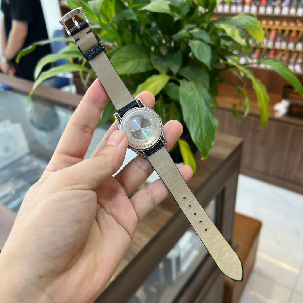 Từng đường cắt, mũi chỉ đều được chăm chút kỹ lưỡng nhằm đảm bảo vừa khít với form dây nguyên bản, đồng thời giữ vững tinh thần quý phái và đẳng cấp của một tuyệt tác đến từ Chopard. Không đơn thuần là thay dây, đây là quá trình phục dựng lại khí chất sang trọng vốn có – nơi mà dây đồng hồ Chopard đóng vai trò như một phần không thể thiếu trong tổng thể của chiếc đồng hồ trị giá bạc tỷ.