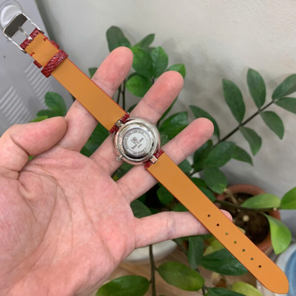 Dây đồng hồ nữ Royal Crown 3628 ST da kỳ đà màu đỏ sẫm