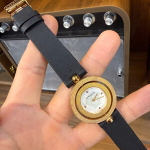 Màu đen cổ điển dễ dàng kết hợp với mọi kiểu đồng hồ và phong cách trang phục — từ thanh lịch nơi công sở đến quý phái trong những buổi tiệc sang trọng. Đặc biệt, phần khóa mạ vàng ánh kim mang đến điểm nhấn đắt giá, tôn lên vẻ tinh tế cho tổng thể thiết kế.