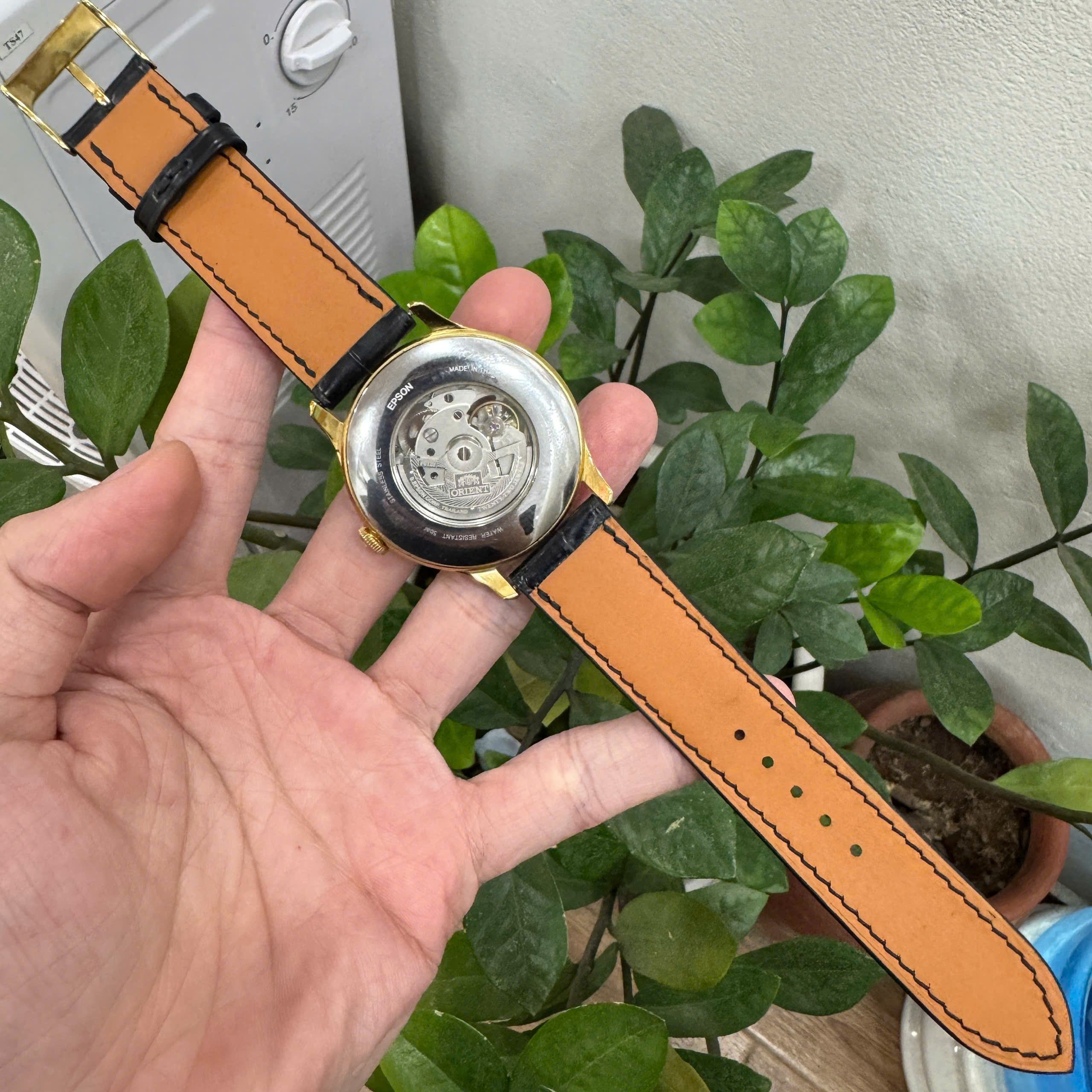 Dây được cắt thủ công chính xác theo kích thước của dòng Orient Caballero (Envoy), giúp ôm khít càng đồng hồ, giữ dáng thanh thoát mà chắc chắn. Các đường chỉ khâu tỉ mỉ, sắc nét, thể hiện đẳng cấp hoàn thiện thủ công cao cấp.