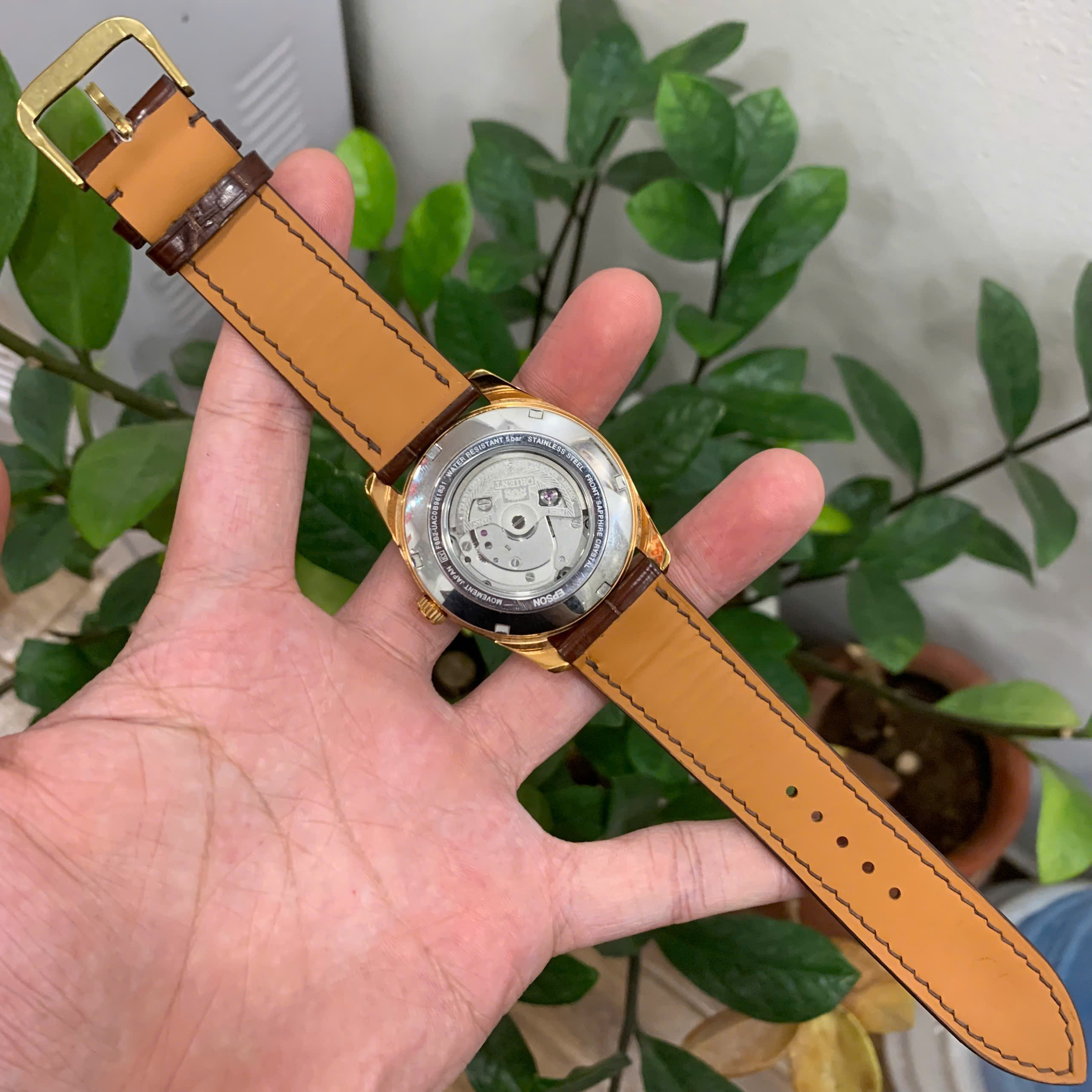Dây Đồng Hồ Orient Sun And Moon Gen 5 RN-AK0304B RA-AK0309B00C Da Cá Sấu Nâu