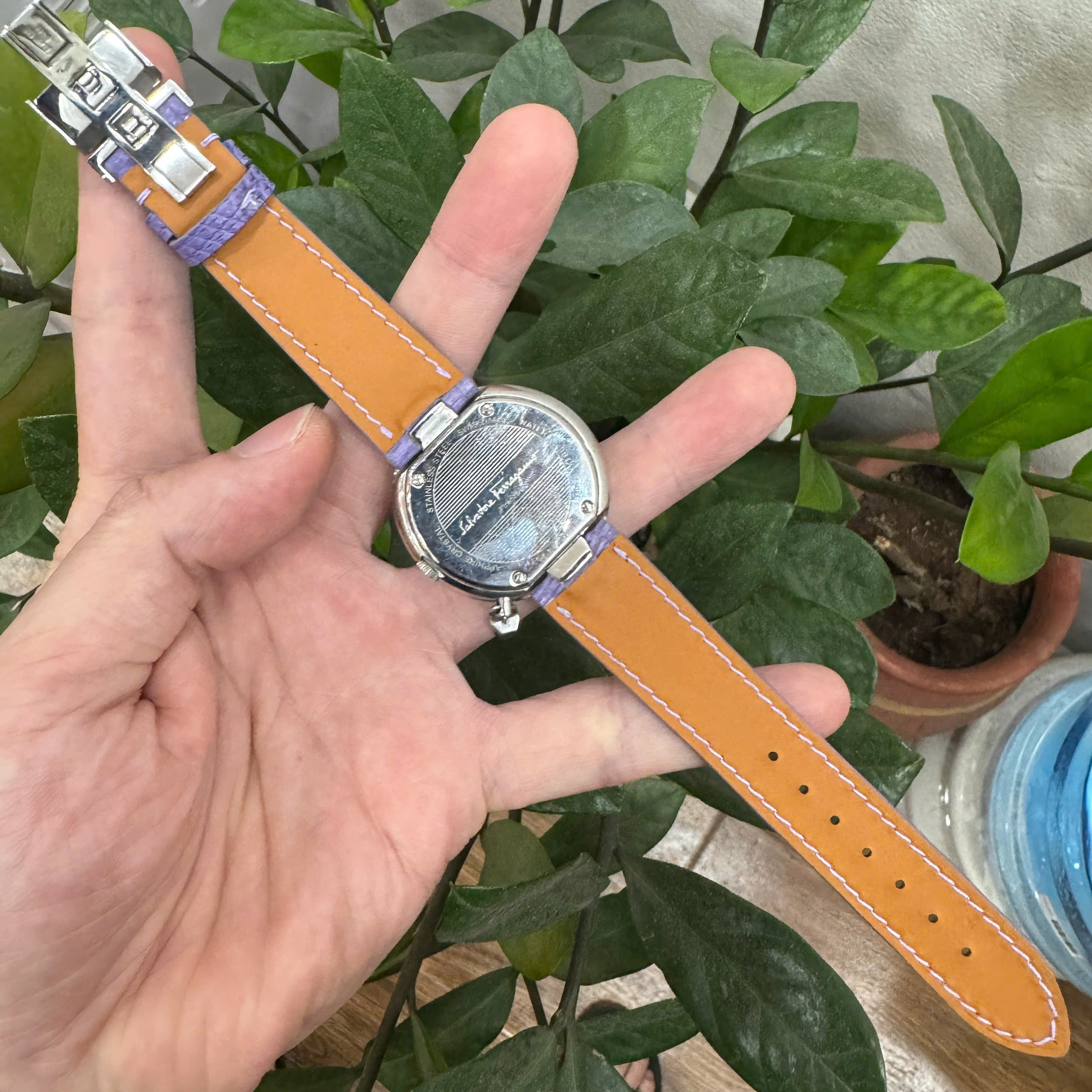 Nếu bạn đang tìm kiếm một mẫu dây đồng hồ nữ Ferragamo tinh tế, thanh lịch và chất lượng cao, thì Salvatore Ferragamo Purple in Steel – 19103710 Da kì đà màu Tím nhạt chính là lựa chọn hoàn hảo để tôn vinh phong cách và đẳng cấp riêng của bạn.