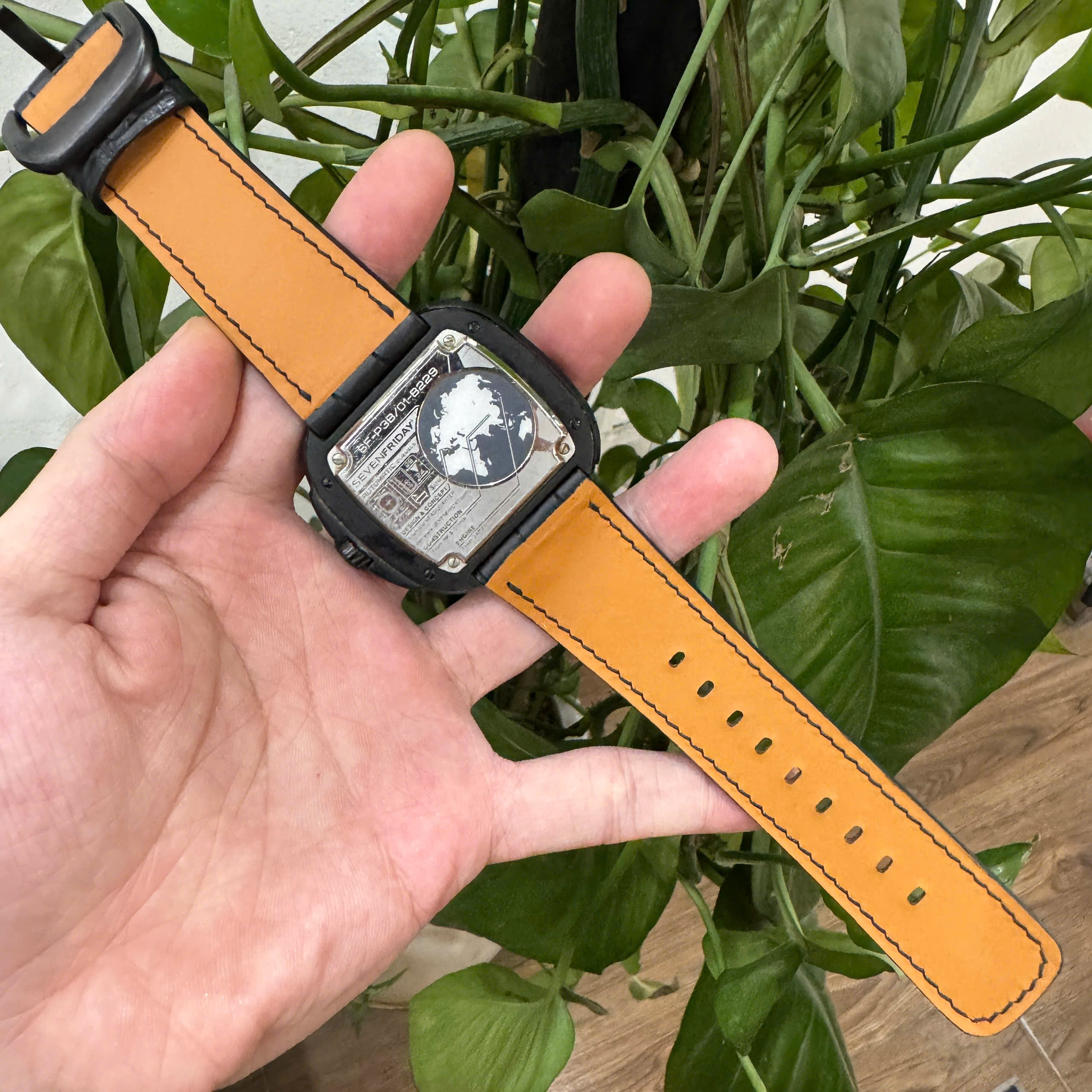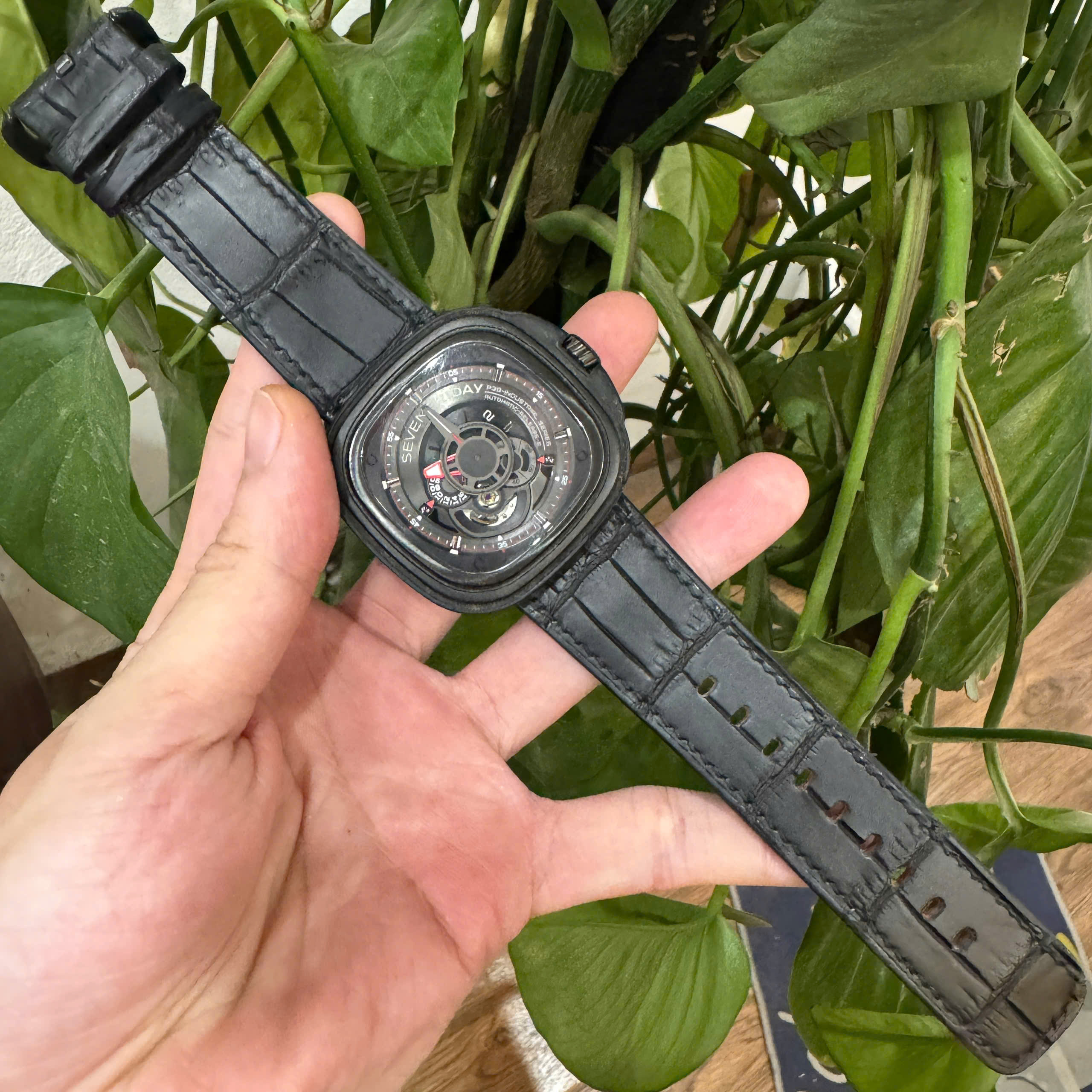 Dây Đồng Hồ SevenFriday P3B/01 Racer Da Cá Sấu Đen
