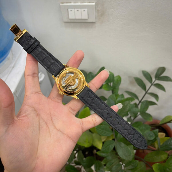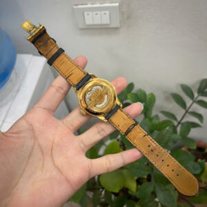 Phong cách cổ điển pha hiện đại dây được kết hợp với mặt đồng hồ vàng hồng tạo nên tổng thể quý phái, lịch lãm — lựa chọn hoàn hảo cho quý ông yêu thích sự tinh tế và đẳng cấp.