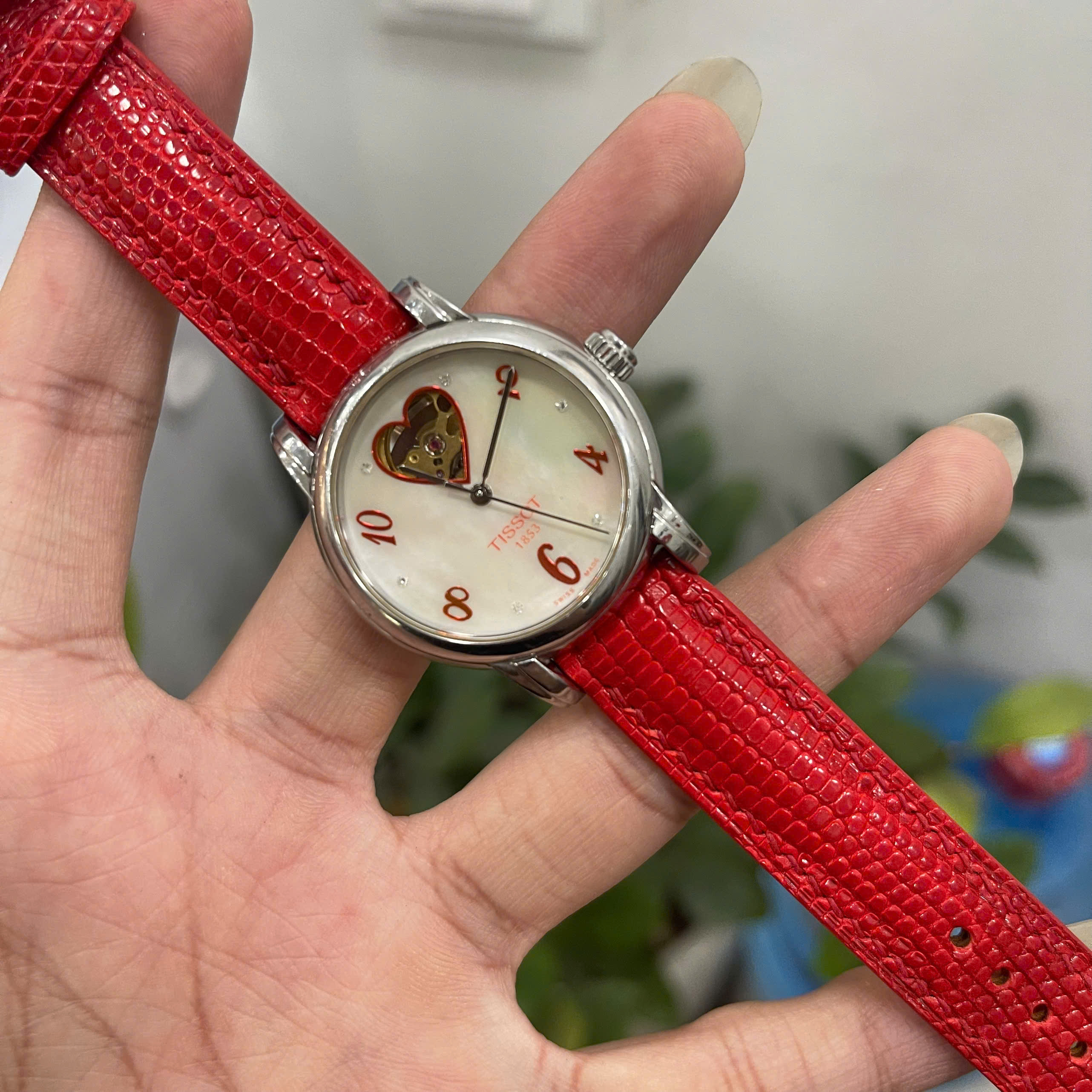 Thay Dây Da Kỳ Đà Màu Đỏ Tissot T-Classic Lady Heart Ladies Cao Cấp Chế Tác Thủ Công